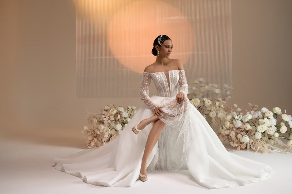 Rochia de mireasă Demetria este o capodoperă spectaculoasă, oferind un echilibru perfect între eleganță clasică și detalii moderne. Această rochie este ideală pentru mireasa care dorește să combine tradiționalul cu un strop de îndrăzneală și stil contemporan.