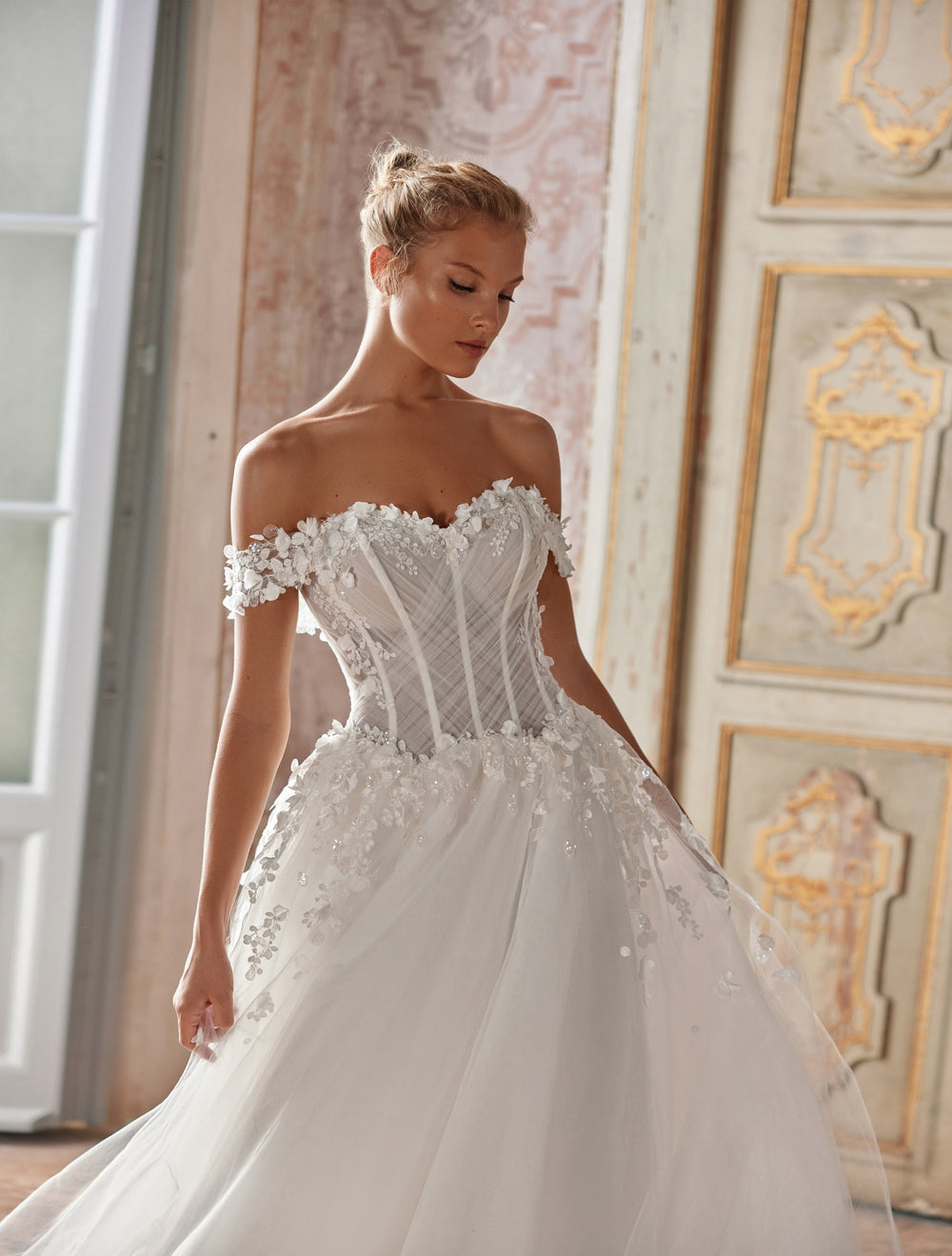 J-1098 este rochia de mireasă care îmbină romantismul clasic cu un aer modern.