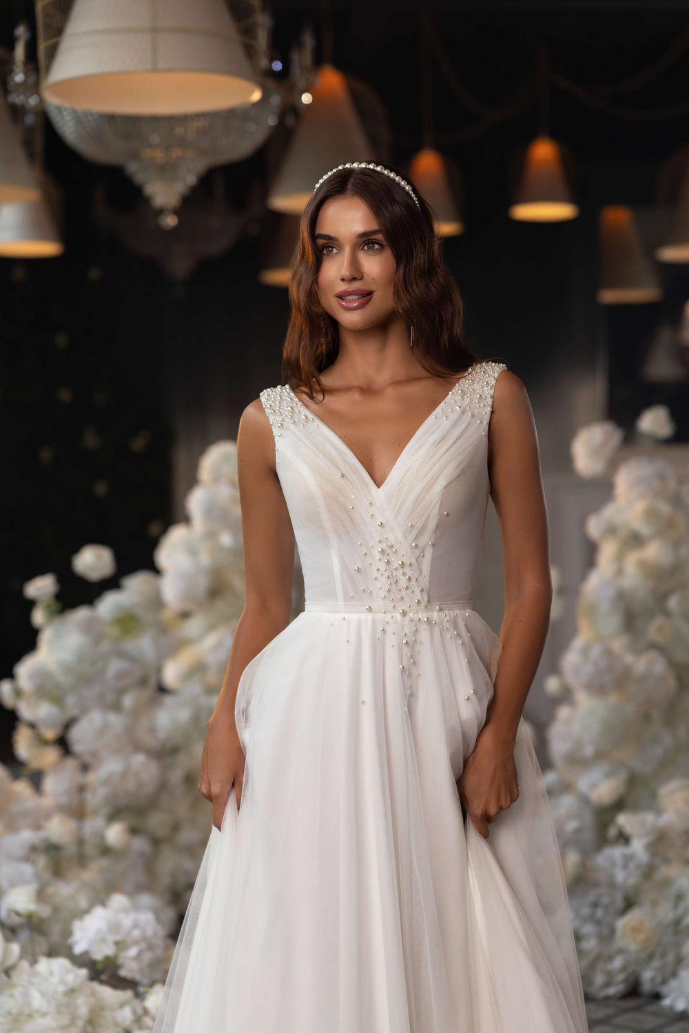 Romina este alegerea ideală pentru mireasa care își dorește un look romantic, luminos și confortabil, potrivit atât pentru nunți în aer liber, cât și pentru sală.