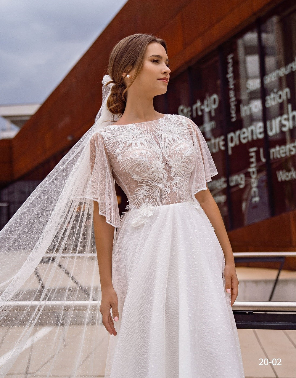 Acest voal se asorteaza foarte bine co rochii de mireasa simple sau cele care contin astfel de detalii pe rochie.