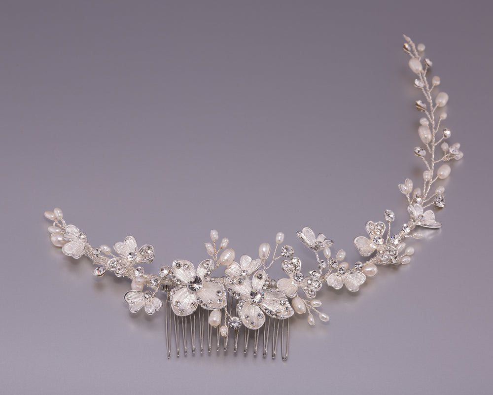 Marianne este rochia care îmbină perfect senzualitatea modernă cu eleganța clasică. Corsetul cu pliseuri sculptate evidențiază linia bustului, în timp ce decolteul tip inimă, susținut de tulle fin, este încununat de umeri goi și aplicații delicate de perle. Talia este subliniată de un brâu...
